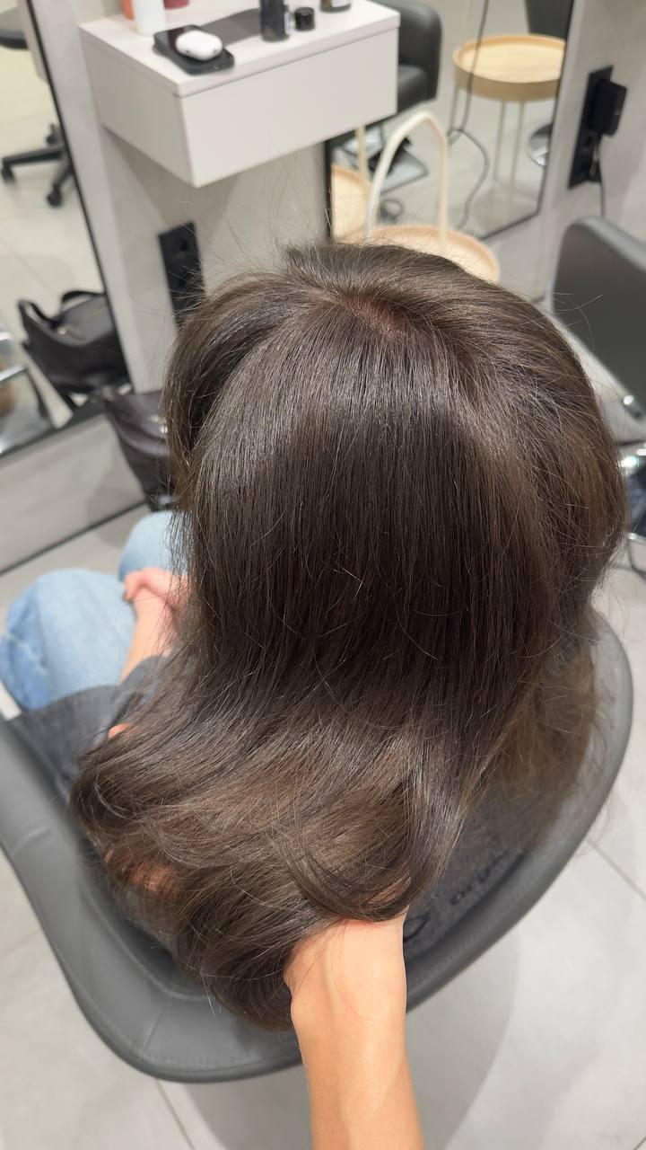 • волосы выглядят более плотными, гладкими, с мягким блеском, при этом сохраняют живую подвижность и объём.